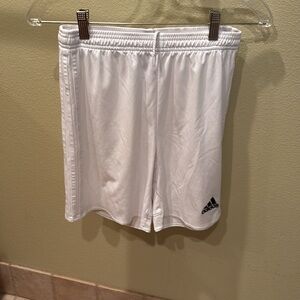 Crisp white kids shorts with iconic Adidas logo. Ideal for workouts and casual outings.