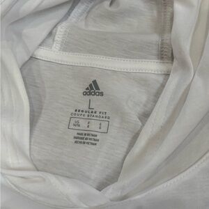 Sleek white Adidas hooded long sleeve shirt. Ideal for everyday comfort. New without tags. Never worn. Super sporty and comfortable wear. Boys L.