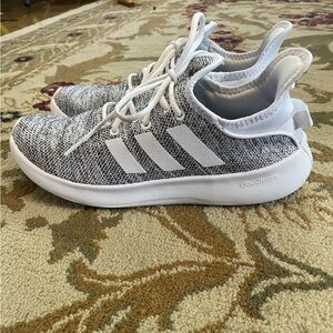 Crisp gray and white Adidas sneakers. Ideal for everyday style.