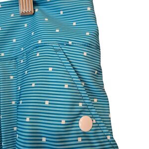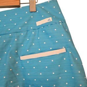 Beautiful blue green color striped and square dots with adidas emblem on skirt and back pocket.