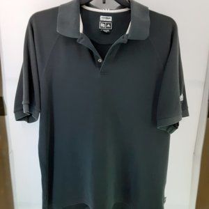 This shirt is pre-owned in good condition. Adidas Clima Lite men’s polo shirt is black, size large, and stretch. It is made of 53% cotton, 42% polyester, 5% spandex, and machine washable. See pictures for details. Message with any questions.