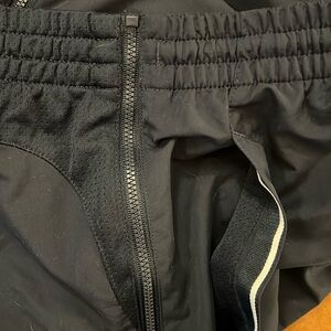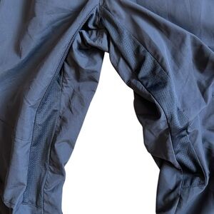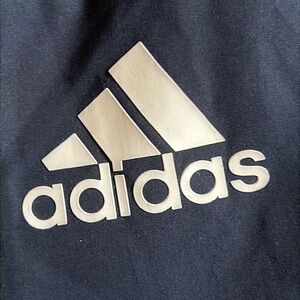 Adidas Clima365 Navy Track Warmup Wind Pants. Full Side Zips, ankle to waist. Mesh Lined. Formotion and Adidas Performance logos. Elastic waist with drawstring. Hip pockets. Polyester. Baggy fit.
