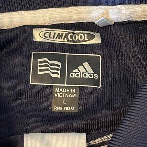 Adidas ClimaCool Baltusrol Golf Polo Shirt Navy & White Stripes L