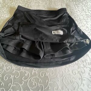Adidas ClimaCool black shorts, skort, skirt. Stretchy black 95% polyester 5% spandex. One small front pocket, one back pocket. Two front slits for easy movement. Around town or on the court comfort of shorts but with the look of a skirt. Approximate measurements laying flat: the waist is 14” and the length is 16”. Great condition. Size 4