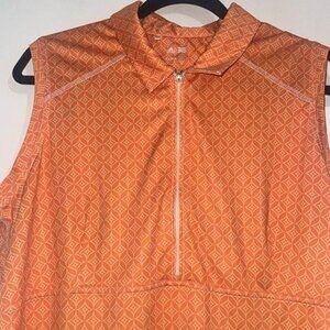 Adidas ClimaCool Sleeveless Orange Geometric Zip Polo Shirt L