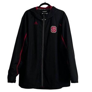 Adidas ClimaProof NC State University Zip Windbreaker Jacket XL Hood Black Red