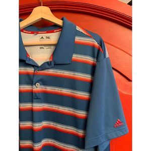 Adidas Climacool 2XL Men's Polo Shirt Red White Blue Striped Casual 4th Of July