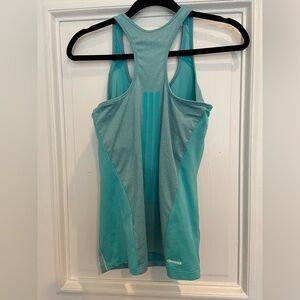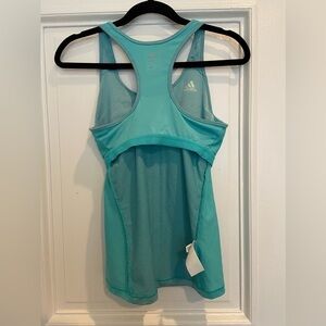 Turquoise blue Climacool workout tank with built in bra. The mesh material on the sides makes this breathable without being see through, a great workout tank!