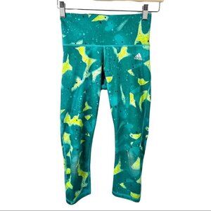 * Adidas Climalite Bright Green Patterned Midrise Cropped Leggings Size XS