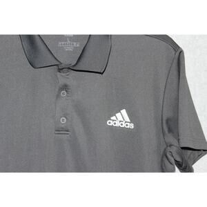 Adidas Climalite Polyester Golf Polo Shirt Men Size Large Graywith White Logo Three Button Pullover