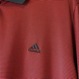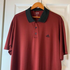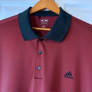 Adidas Climalite Golf Shirt Mens XL 1/4 Button Red w/Black Stripes Logo Front