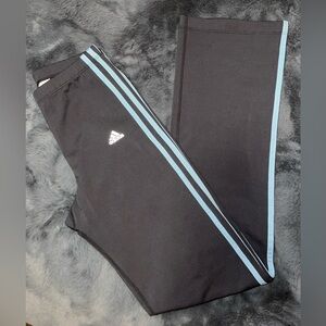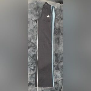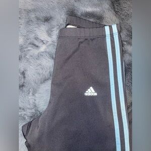 These Adidas Climalite pants are a medium gray and have the classic 3 stripes in a light blue. They are in like new condition and are a size medium. These stretchy pants are made of 90% polyester and 10% spandex. They measure 32” long from the inseam.
