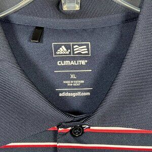 Adidas Climalite Mens XL Golf Polo Navy Red White Short Sleeve Collared 3 Button