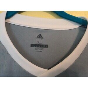 Adidas Climalite Soccer Style 3 Stripe Shirt Jersey Men's Size XL Grey Pinstripe