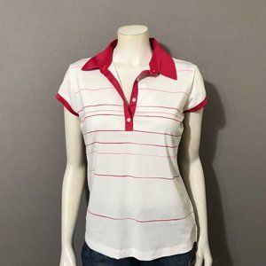 Adidas Climalite Womens Golf Pink & White Stripe Top Sz-Medium