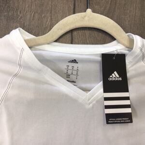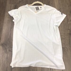 White Women’s Adidas Climalite V Neck Short Sleeve Shirt Size Medium