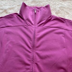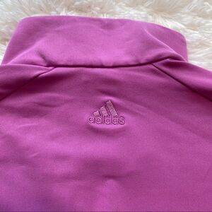 Adidas Climalite Pink Front Zipper Jacket, Size Large. Excellent used condition. Full front zipper closure. 2 front zipper pockets. Measures chest 41”, length 26.5”, sleeve 24.5”.