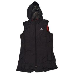 Stay warm and stylish during your next workout with this Adidas Climaproof Fleece Lined Hoodie Vest Jacket. This windbreaker-style vest features a zip pocket for added convenience and is made of 100% polyester. It comes in a sleek black color and is designed for women in size XS. Perfect for any occasion, this activewear jacket is sure to elevate your workout wardrobe.