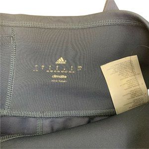 Adidas Climate Capri Leggings Purple And Black Striped Accent Womens Size Small. The Leggings are in pre owned condition with no rips or tears. Has a small pocket inside the waist. Small little marks on one leg as shown in photos. Please see the photos for detailed overall item condition and measurements