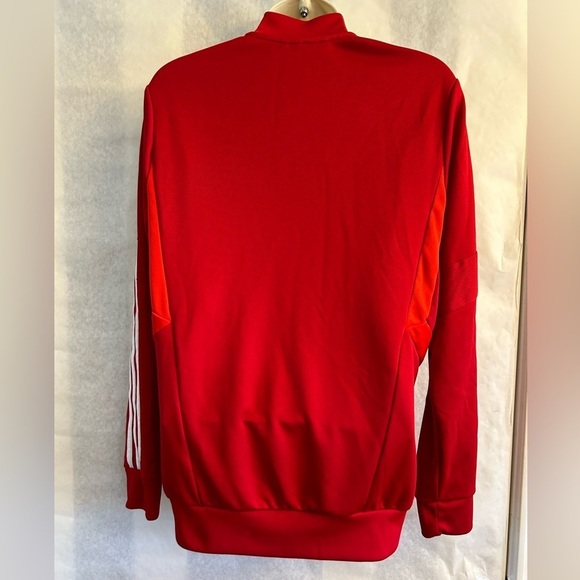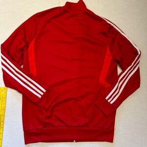 Adidas Climate anti humidity fabric full zip jacket with front pockets. 100% poly. Pre owned in great condition. Sz-L. Fits like an adult M.