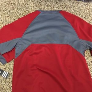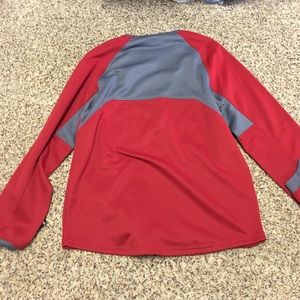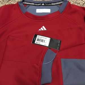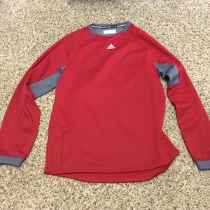 Officially licensed adidas apparel. Style 362F. 100% interlock Fleece. Rib knit collar and cuffs. Media pocket on lower right hip. White embroidered adidas logo.