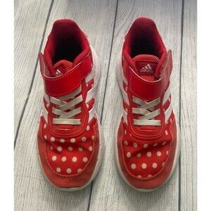 Adidas Cloudfoam Disney Minnie Mouse Girl Shoes, Size Youth 13. Cute shoes! Cleaned and ready for the next kid. Perfect for a trip to Disneyland.