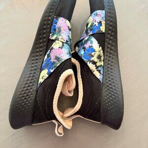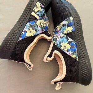 Built for comfort with style to match. These Adidas running-inspired shoes feature a pillow-soft Cloudfoam midsole for comfort all day long. Wide elastic straps on the slip-on upper securely hold in your foot. A pretty floral design is featured on the elastic straps. Excellent condition. Size 9 1/2. Smoke-free home. Brand new.