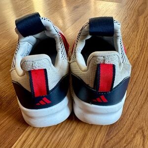Comfortable cloudfoam sneakers for kids. White base with faux red laces. Slip on style. Ideal for play and daily wear.