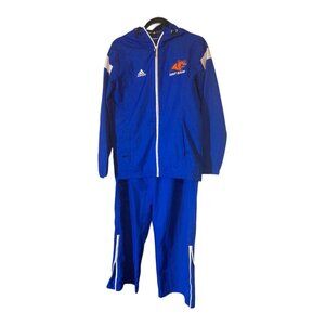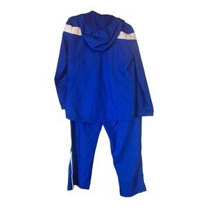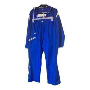 Look sharp and be comfortable at the same time with this two-piece Adidas tracksuit set. The set is designed for men and comes in XL size. The set includes a long-sleeved blue track jacket with a front zip closure and a matching pair of flared track pants.