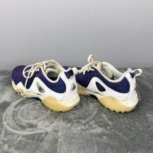The Adidas Code Chaos 21 Primeblue Golf Shoes in White/Marine/Scarlett are high-performance athletic sneakers designed for golf enthusiasts. These lace-up shoes feature a comfortable lace-up closure, moderate cushioning, and a durable rubber outsole for optimal traction on the golf course. With a stylish multicolor design and iconic adidas logo accents, these shoes are perfect for all seasons and occasions, making them a must-have for any golfer looking to up their game.