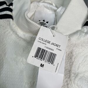 Adidas College Jacket Womens Medium Floral Lace Full Zip NWT White. New with tags. 25 long by 22 pit to pit. Sold exactly as pictured.