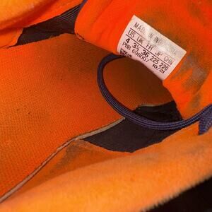 – Navy blue leather uppers with orange lining and white Adidas stripes