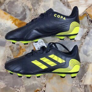 The Adidas Copa Sense.4 FxGJ Soccer Cleat in Core Black/Solar Yellow is a stylish and durable option for little boys who enjoy playing soccer. With a bold combination of black and yellowish green color and the iconic Adidas 3 stripes design, these cleats help young athletes stand out on the field. The adidas brand ensures quality and performance, making these cleats a reliable choice for any young soccer player looking to up their game.