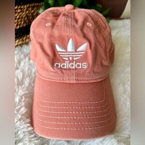 Pink Adidas cap with classic logo in white. Slight faded discolorations shown in pics along with an area that could be stitched. Super cute for errands, sports games, dates at the park etc! One size fits most 🧢💗