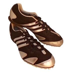 Get ready to dominate the track with these pre-owned Adidas Cosmos Techstar track cleats! These stylish cleats feature a sleek black design with eye-catching silver accents, perfect for adding a touch of flair to your athletic gear.