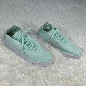 The shoes have a white sole and are designed for casual wear, blending athletic functionality with a stylish aesthetic. The colorway is officially known as "Ice Mint"