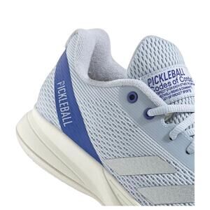 The Adidas Courtflash Pickleball shoes in Halo Blue Silver Metallic are designed for women in size 8 (UK 5.5). These athletic sneakers feature a low top shaft style with a lace-up closure, making them ideal for both activewear and casual occasions. The shoes are from the Adidas Pickleball product line and are designed for pickleball performance, with features like cushioning, lightweight construction, and comfort. The stylish design, solid pattern, and mesh upper material make these shoes a versatile choice for all seasons.