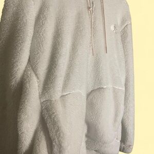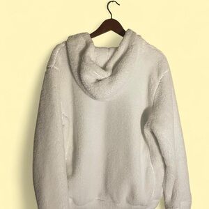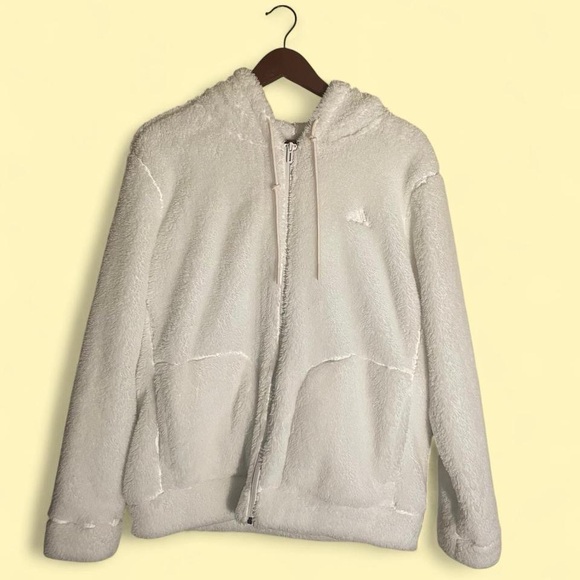 Adidas Women's white fleece hoodie with a zip-up front and hood soft and warm.
