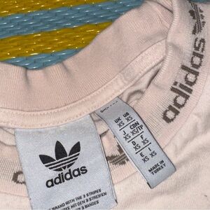 Adidas Cream Brown Tee Shirt Neck Logo Women’s Size X-Small