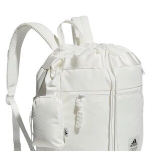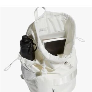 Elegant Adidas bag in cream mesh. Features zip closure and modern design.