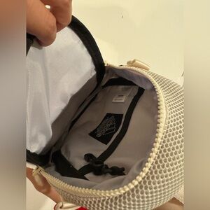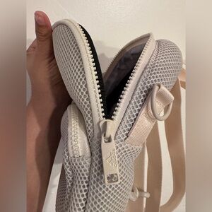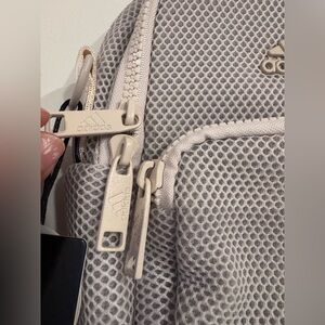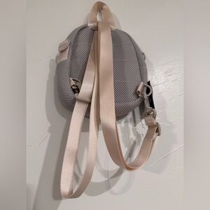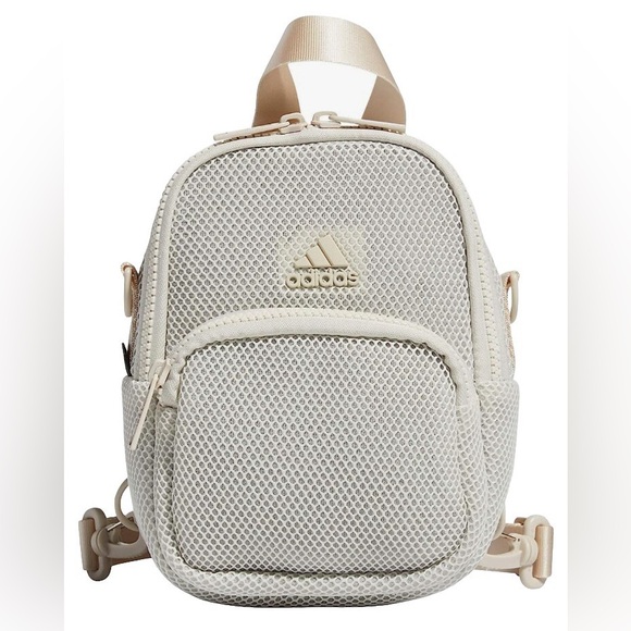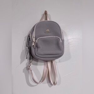 Stylish mini backpack. Mesh texture. Front zip pocket. Adjustable straps.