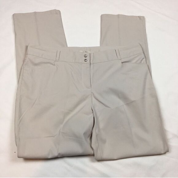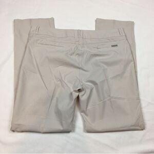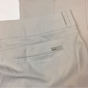 Stylish cream capri pants with a straight leg design. Perfect for versatile wear. Comfortable and chic. 22" inseam.