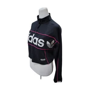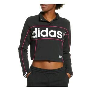 Adidas Cropped Sweatshirt Women’s XS Black Graphic Logo Athleisure Pullover