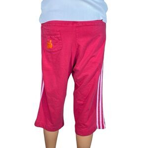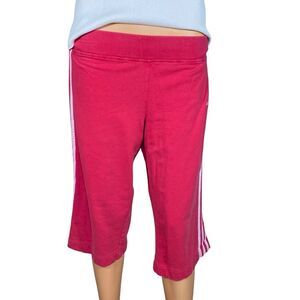 Adidas Cropped Track Pants Girls Size Large Pink with White Stripe Casual Gym