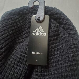 Adidas Crystal Brimmer Hat, a black, knitted winter hat with a short brim and a soft fleece lining for warmth and comfort.