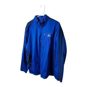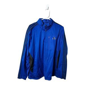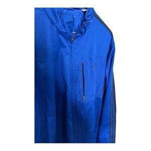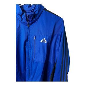 Adidas DRIVE 2 ALL WEATHER Hooded Blue & Black windbreaker Track jacket Sz XL EUC smoke free dog friendly home Stow hood