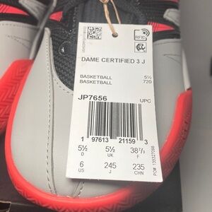Adidas Dame Certified 3 J Basketball Shoes Youth Size 6 Gray/Black/Red)