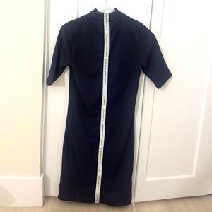 Elegant Adidas dress in dark blue. Features short sleeves and a minimalist design.