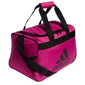 This brand new Heather Gray and pink Adidas Diablo Duffel Bag is a size small. The durable 100% polyester material makes this bag very easy to wipe clean with soap and water. The dimensions are 18.5x10x11. It is unisex for men and women. Ideal for use as a vacation travel carry on bag for the airplane, running errands, gym training bag and etc.