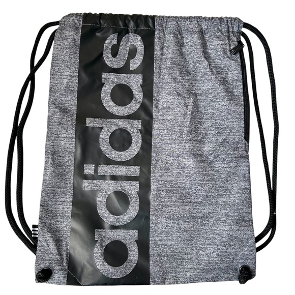Adidas Draw String Gym Sack Black Gray Merle Zipper Side Pocket Logo